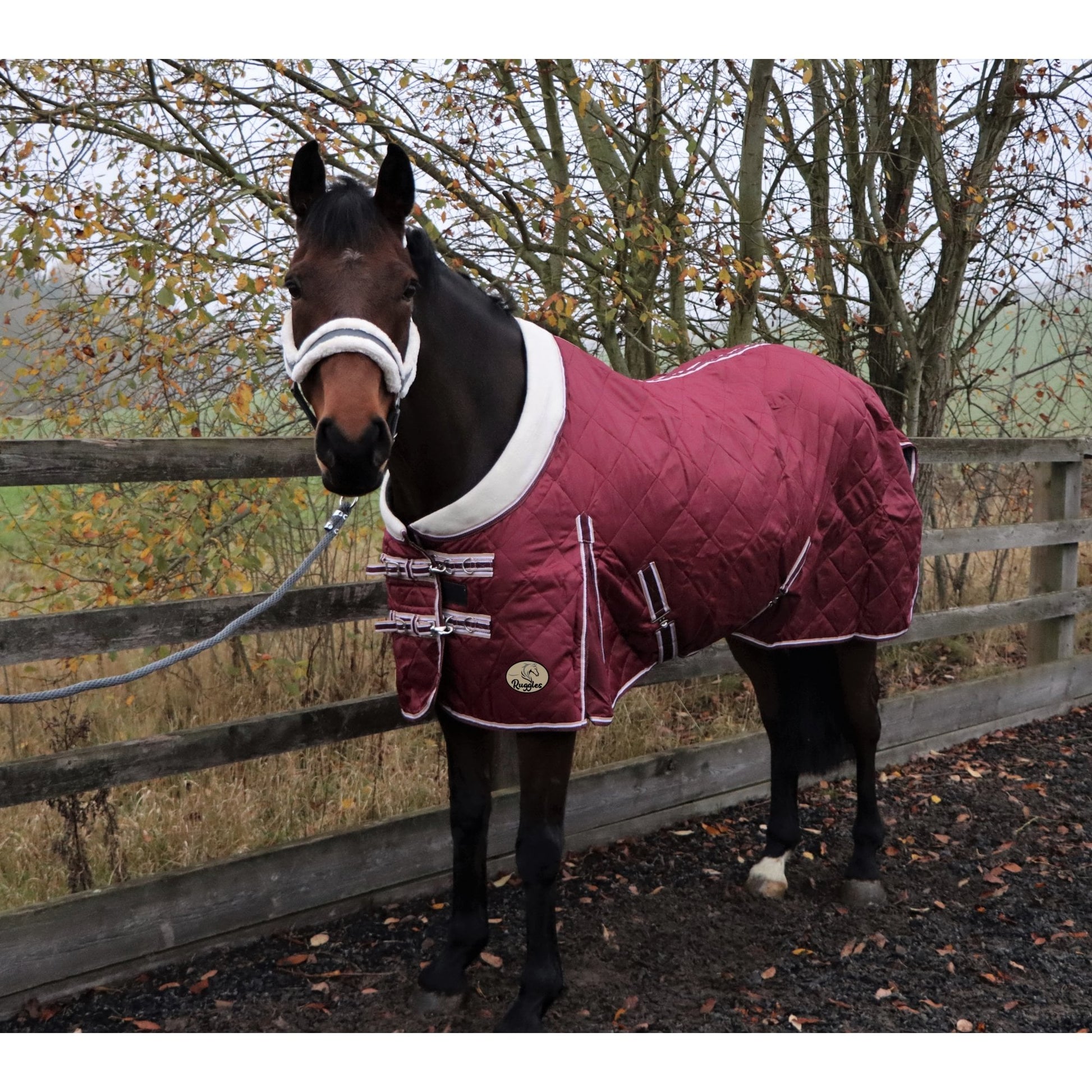 The 50g Lightweight Stable Rug with fleece collar and tail flap is a versatile and stylish choice. Use it as a standalone rug or as part of a layering system for clipped horses in colder months.