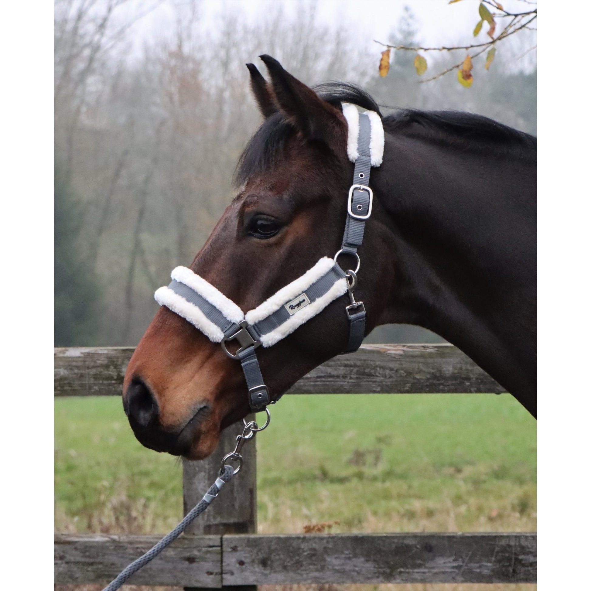This fully adjustable head collar with contrast fur is extremely smart in appearance and is excellent for shows, competition, and travel.