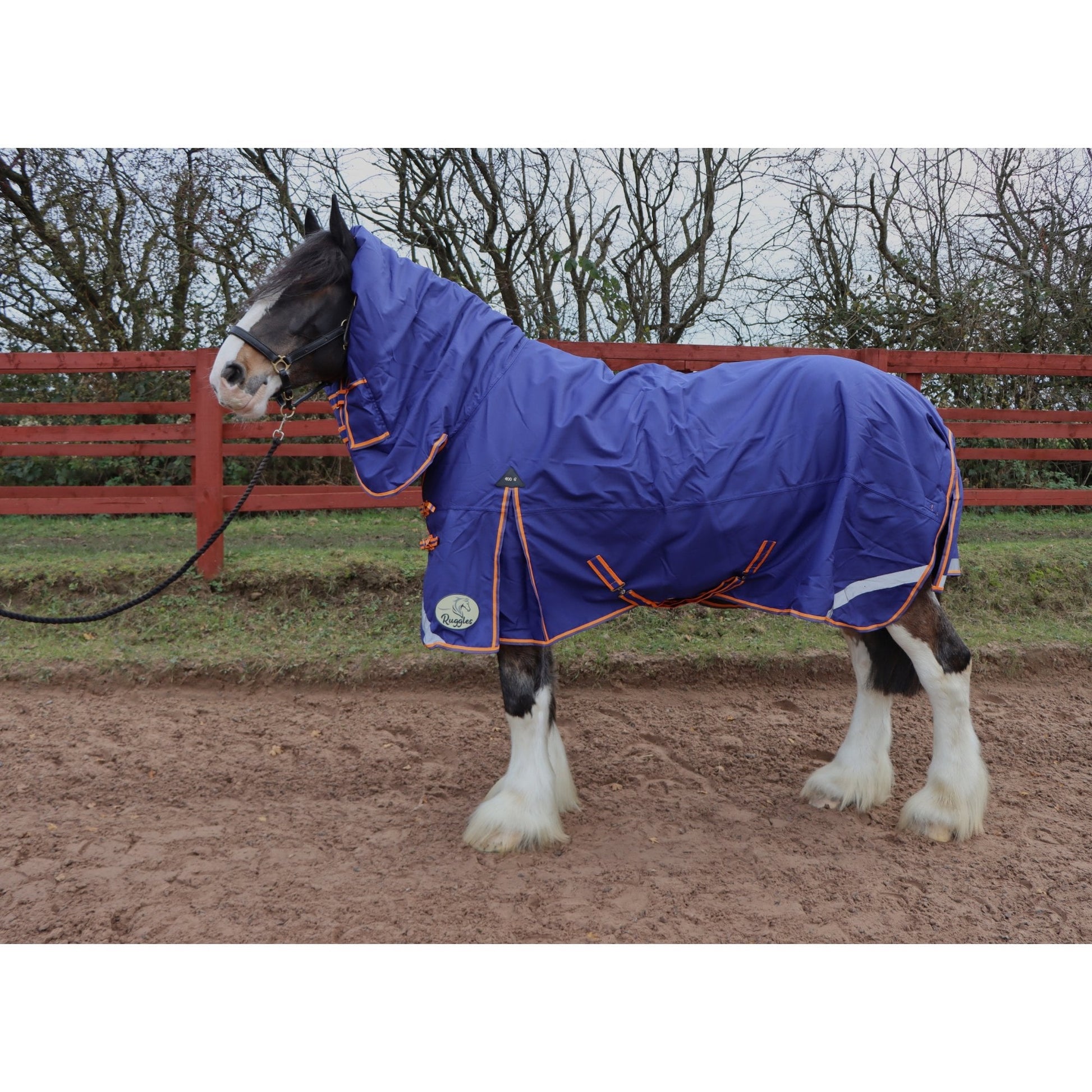 The heavy horse heavyweight 400g 1200D combo turnout rug is designed for heavier breeds such as Shire, Percheron, and Clydesdale. Its deeper and more generous fit at the shoulder and chest ensures comfort for these robust builds.