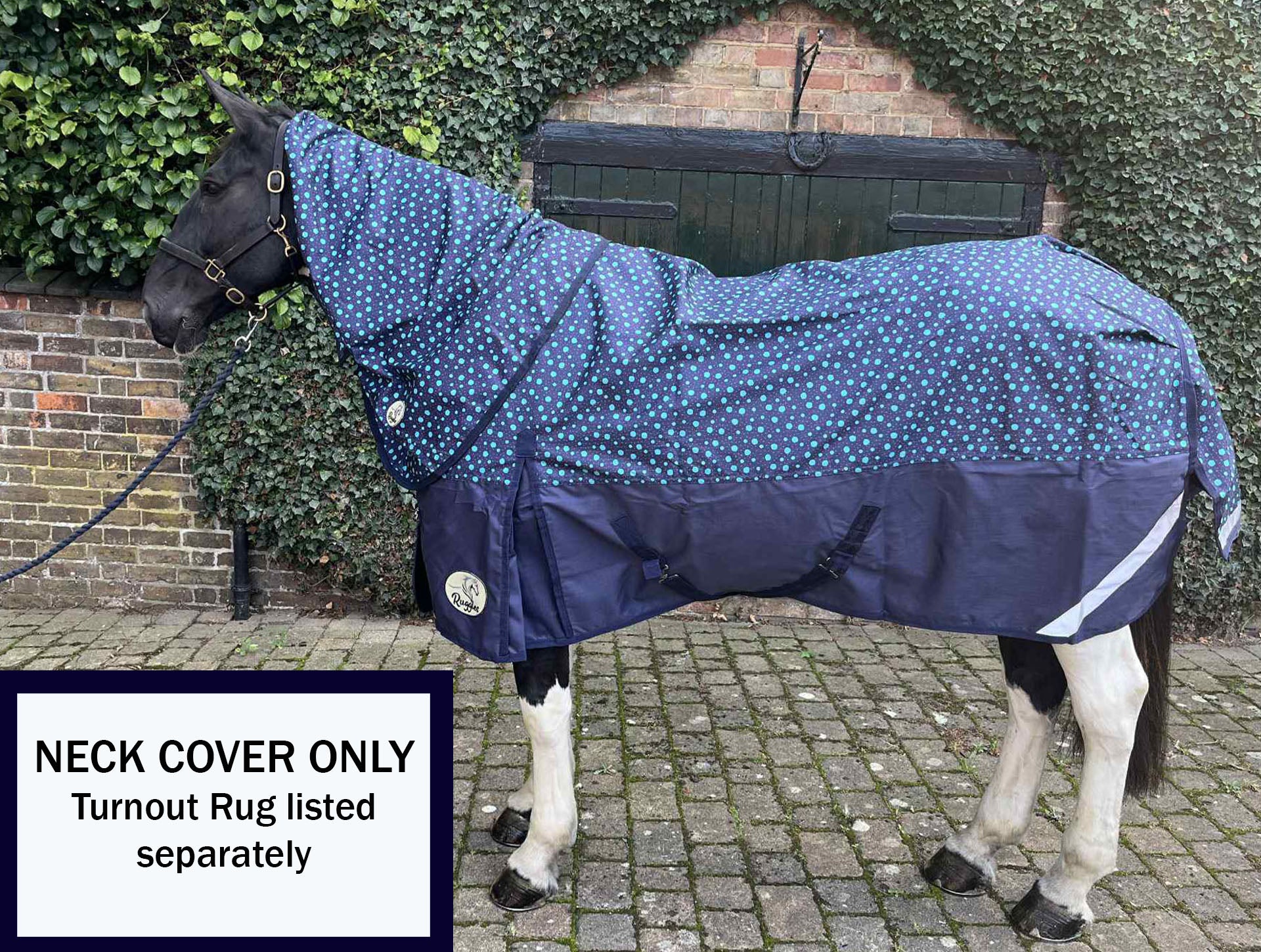 Constructed from 1200D waterproof and breathable Teflon™ coated material, it features a soft nylon lining to keep the coat smooth and reduce rubbing. The Velcro fastenings attach securely to the turnout rug - listed separately. Double Velcro straps on the underside ensure a fitted attachment, with a flap over to protect. An elastic element at the poll helps prevent slippage and shields against rain and wind.