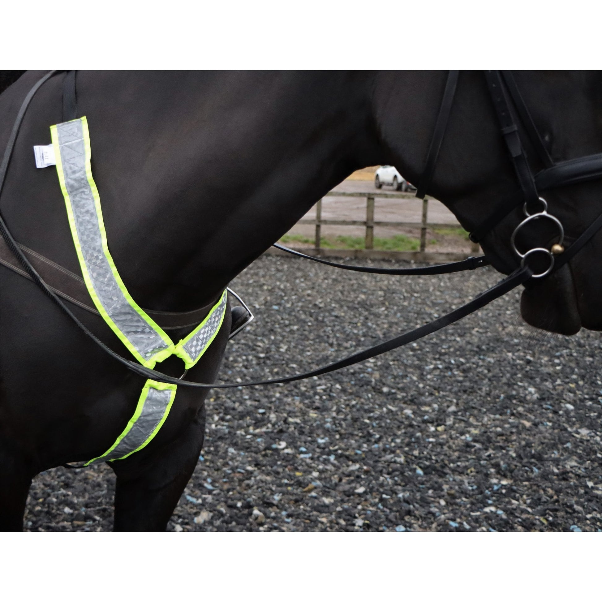 This hi-viz adjustable breast plate is made from a bright yellow waterproof fabric with reflective panels to ensure good visibility when riding in poor light conditions.
