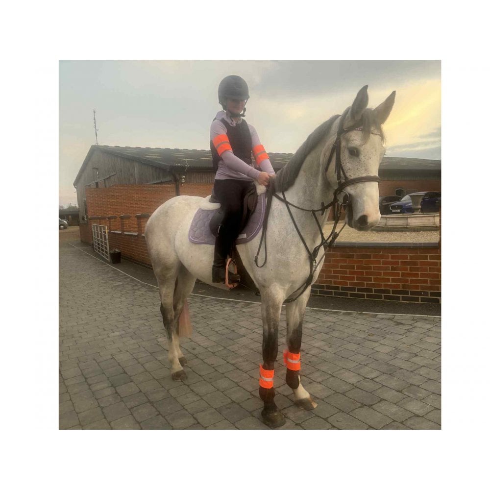 They can be used on the horse's legs over boots or on the rider's arms for extra visibility.