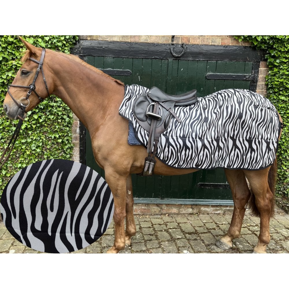 Made from breathable close weave mesh in zebra print which has been proven to confuse flies and deter them from landing.