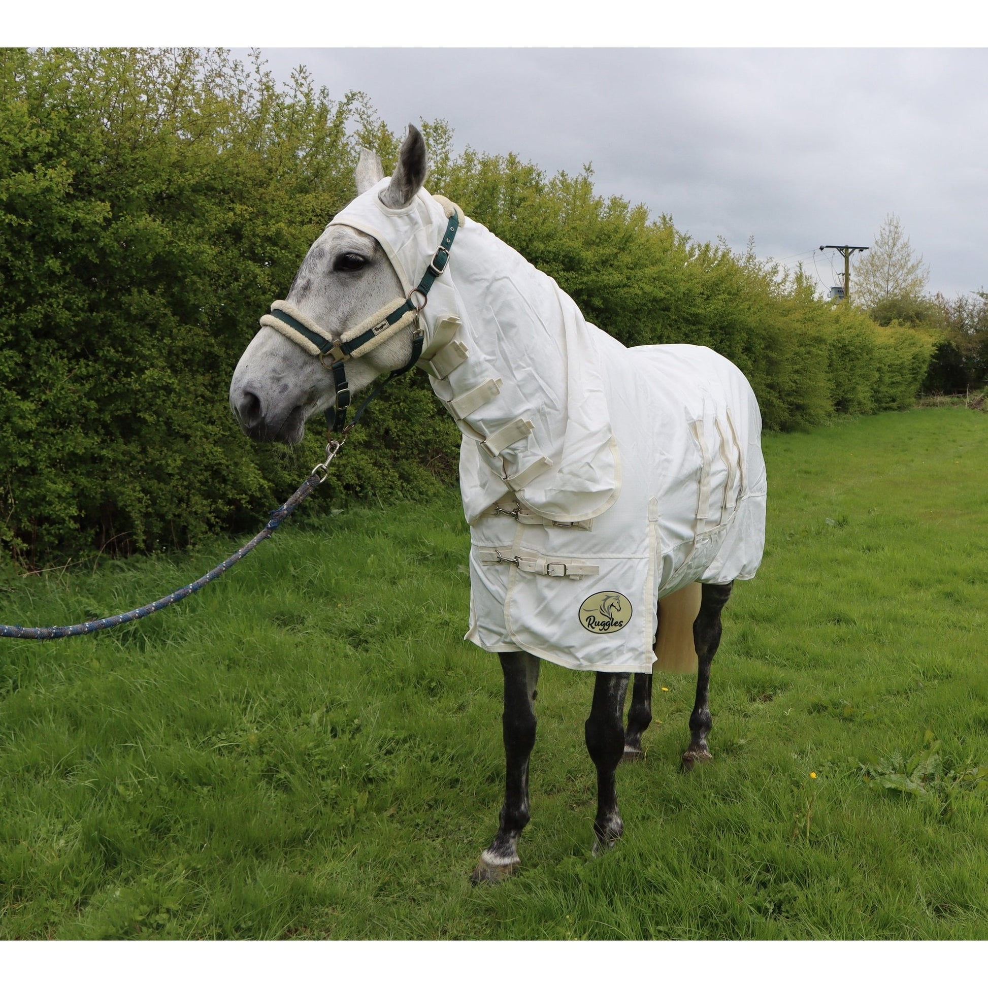 The rug incorporates a silky mane and shoulder liner which helps to prevent rubbing and offers comfort to the horse. With a fully integrated neck cover, belly wrap and super size tail flap, this rug offers head to tail protection from biting insects.